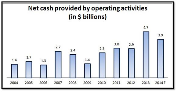 Posting good numbers when the market conditions are favorable is the easy part. A company's true caliber comes out when the going gets tough. The current year is going to be a difficult one for Deere as U.S. farm cash receipts, which are a good indicator of farm equipment sales, are expected to be down 10%. South America, another key market for the ag major, is also dangerously close to a recession. Deere has forecast a 5%-10% reduction in demand for ag equipment in the U.S. in 2014 and expects companywide sales and earnings to drop 6% and 5.7% respectively in the fiscal. However, it's heartening to see that despite the headwinds, it's kept its earlier forecast for cash from operations unaltered at nearly $4 billion.