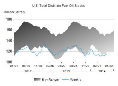 Distillates supplies, which include diesel and heating oil, dipped 0.4 million barrels (0.3%) after expanding for the previous two weeks. Distillates demand for the last four weeks is up a seasonally adjusted 11.6%. In the past year, distillates inventories have decreased 3.1%.