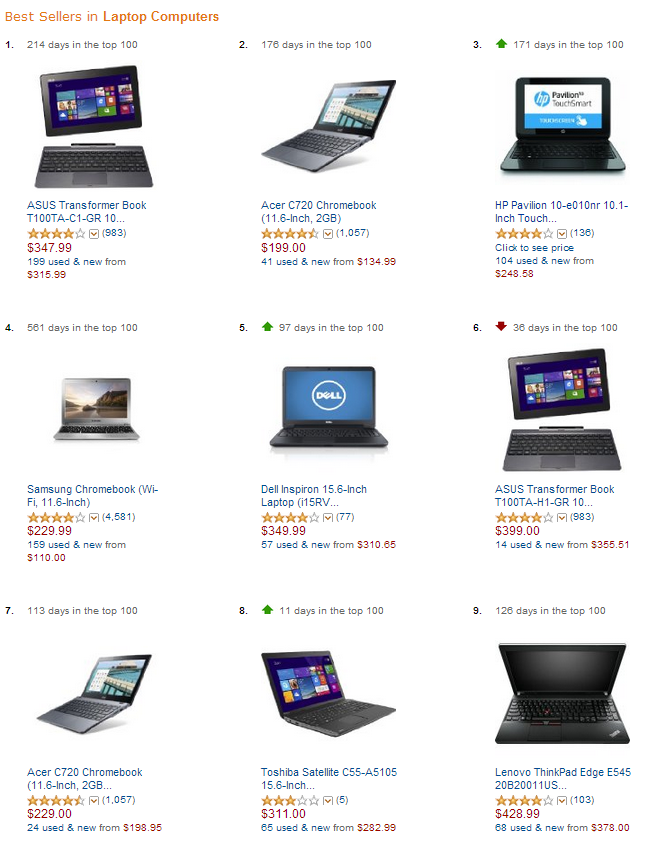 Chromebooks are proving among the most popular of notebook PCs among consumers. Source: Amazon.com.