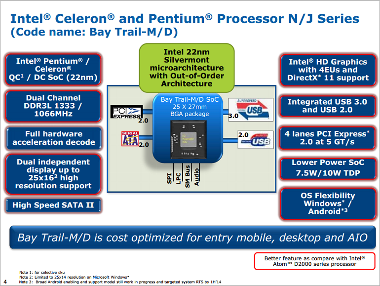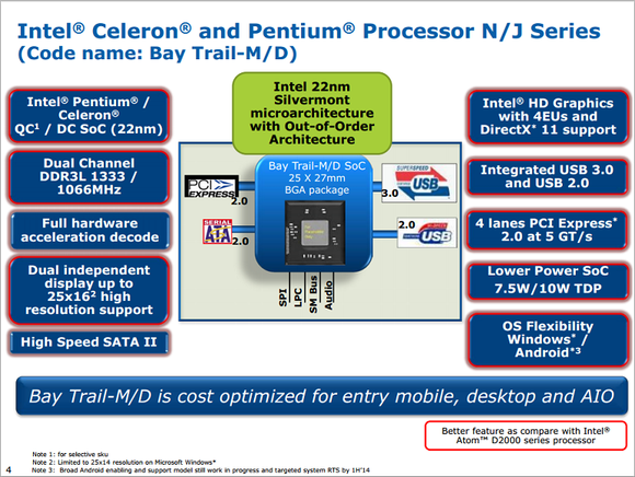 Intel's Bay Trail-M offers lower power and a good cost structure for cheap PCs. Source: Intel.