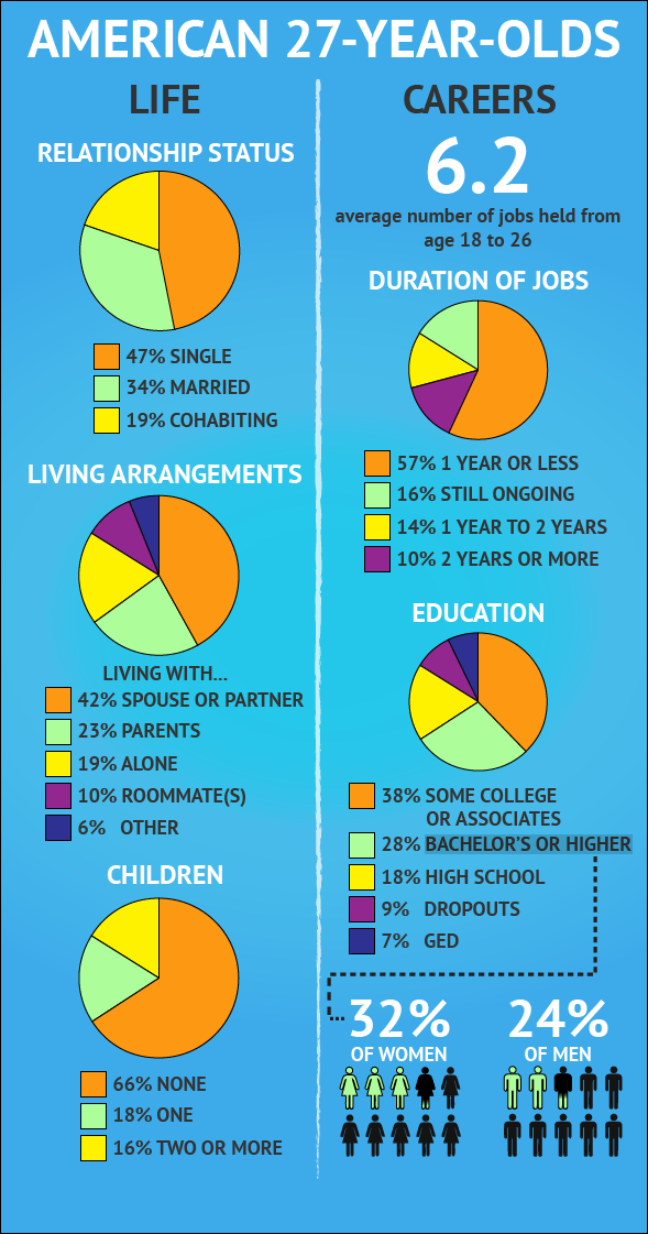 Millennials now live in the middle of many key marketing demographics, and understanding them is important for any consumer-focused business. Take a look at the infographic below to get a taste of what it's like to be 27 years old in America, and read on about how consumer companies vie for this young generation's spending.