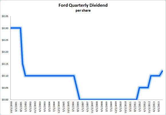 Ford's dividend pays out $0.125 per share quarterly for a total of $0.50 per share annually. At today's price, that's roughly a yield of 3.1%, which compares very favorably to Japanese rivals Toyota and Honda, which check in at around 2.2% and 1.2%, respectively. Ford's dividend yield trails only cross-town rival General Motors, but that's mainly because GM's stock has suffered a pullback in its stock price amid its massive recall debacle this year.