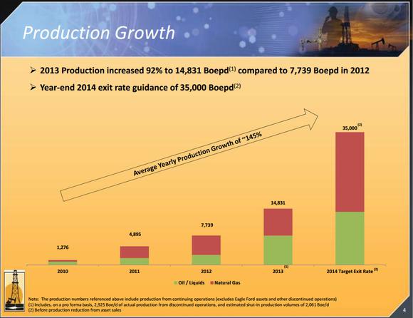 While the company's production guidance rate for 2014 has been lowered to 32,500 BOE/d to reflect recent asset sales, that's still a very compelling growth rate. It's a rate that the company doesn't expect to slow anytime soon and could actually accelerate in the future, as Magnum Hunter is contemplating the addition of another drilling rig next year.