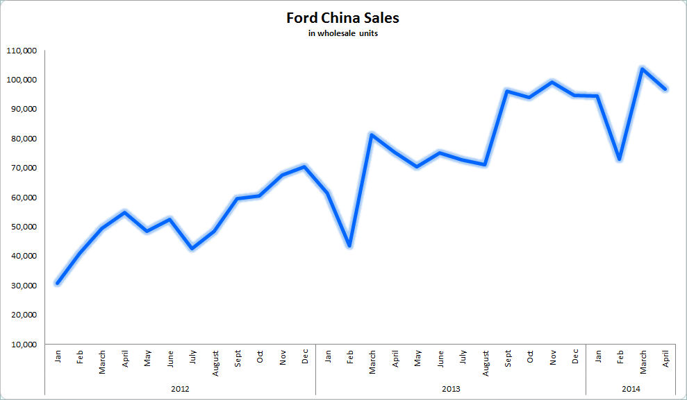 Let's get the sales figures out of the way first, before putting the big picture into focus. Last month, Ford China sold 96,829 vehicles, which was a substantial 29% improvement from last year's April. Last month's performance helped push year-to-date sales figures up to 368,150 vehicles, which is a 46% improvement compared to last year.