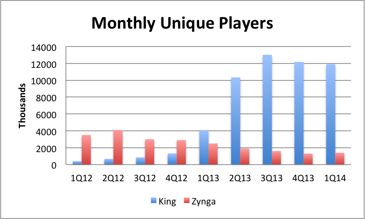King's first-quarter MUUs were 352 million. So King's number has dropped down to around 3%. That's still better than Zynga, so no need to sound that alarm quite yet. But it's worth following this metric in future quarterly releases.