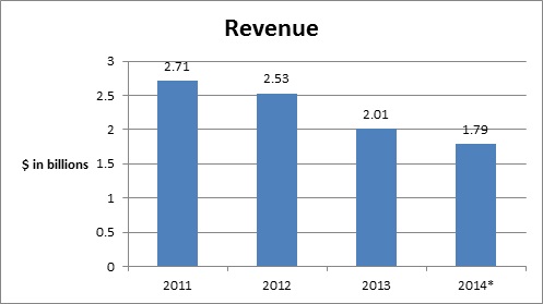 As the table shows, the overall revenues for 2014 are not expected to cross $2 billion. The decrease in revenue, although justified, could impact the valuations of the company going forward if the information about retained MWs is not properly disseminated among investors.