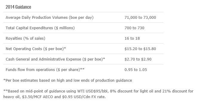 These resources allow Pengrowth Energy to produce an average of 77,371 barrels of oil equivalent per day, making it one of the larger upstream producers of oil and natural gas in North America. Unfortunately, Pengrowth's management guided lower for 2014, predicting that the company would only produce an average of 71,000 to 73,000 barrels of oil equivalent per day.