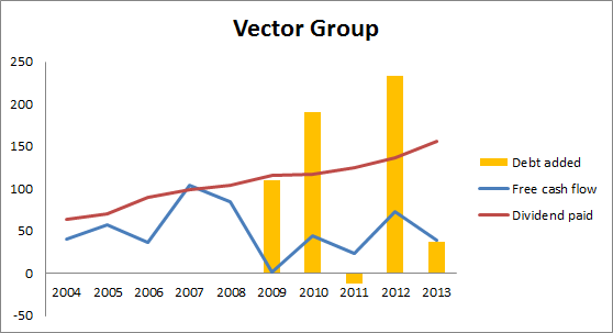 For instance, Vector pays a much higher dividend than it generates in free cash flow. Historically, it financed the difference by borrowing money.
