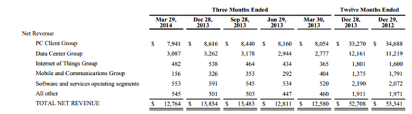 Interestingly, if we assume that 2014 will be down slightly from 2013, the division should generate revenue of about $1.2 billion for 2014. By no means will that narrow the loss (the loss will widen), but for those expecting that the company's modem business will continue to deteriorate sequentially throughout 2014, this should largely dispel that notion.