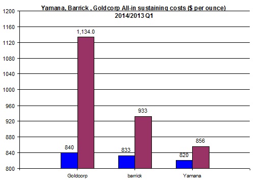 Data from Yamana Gold, Barrick Gold, and Goldcorp