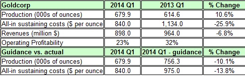 But the company plans to increase its production in the coming months with projects such as Cerro Negro in Argentina, which Goldcorp estimates will start to produce in the fourth quarter of 2014. Moreover, the company reconfirmed it will reach its annual gold production guidance of around 3 million ounces of gold.
