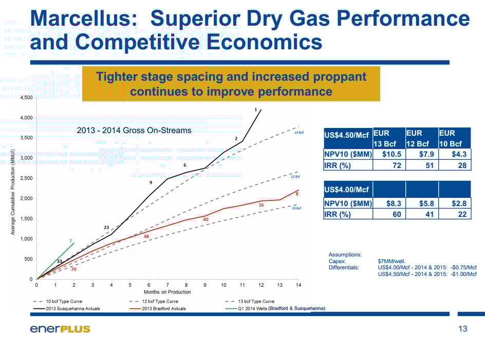 Overall, Enerplus is getting better at getting more gas out of the Marcellus Shale by using tighter spacing and increasing the amount of proppants.