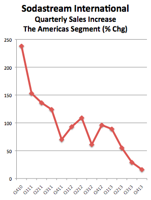 We also know that the leading player in the DIY soda market, SodaStream International, is seeing sales growth evaporate at an accelerated rate. Where once it was expanding at triple-digit rates in the Americas segment, now its largest contributor to revenues, fourth-quarter sales were up in just the mid-teens, and the trend continues downward. Admittedly, no company can maintain such meteoric growth rates for an extended period of time, but the speed at which the air has escaped is what's troublesome.