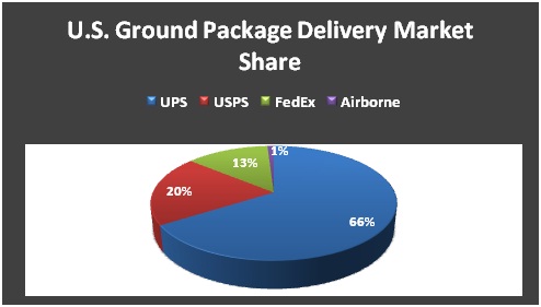 United Parcel has dominated the $32 billion ground package delivery segment in the U.S. for years. Growth in the American economy and an increasing demand for e-commerce are providing a solid boost to the company's ground business. Its fleet of 103,000 ground vehicles far outnumbers archrival FedEx's (FDX 0.14%), which deploys 47,500 vehicles.