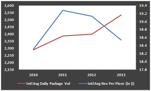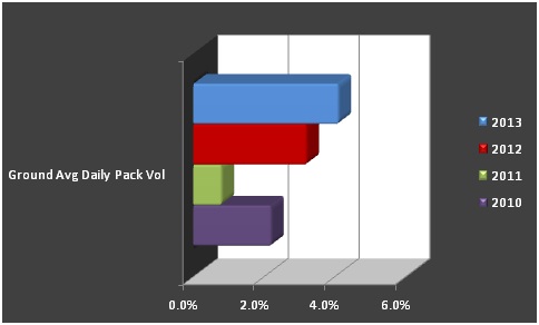 In the past quarter, United Parcel witnessed 4.4% growth in the ground segment average package daily volume, buoyed by higher demand for SurePost, a cost-effective but less-speedy service. Volume growth in the ground segment in 2012 and 2013 were mostly driven by a rising consumer preference for SurePost.