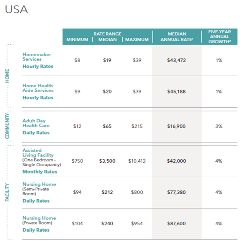 The math may not be exact, but with the current pricing data and anticipated growth rates you can get an idea of your future long-term care expenditures.