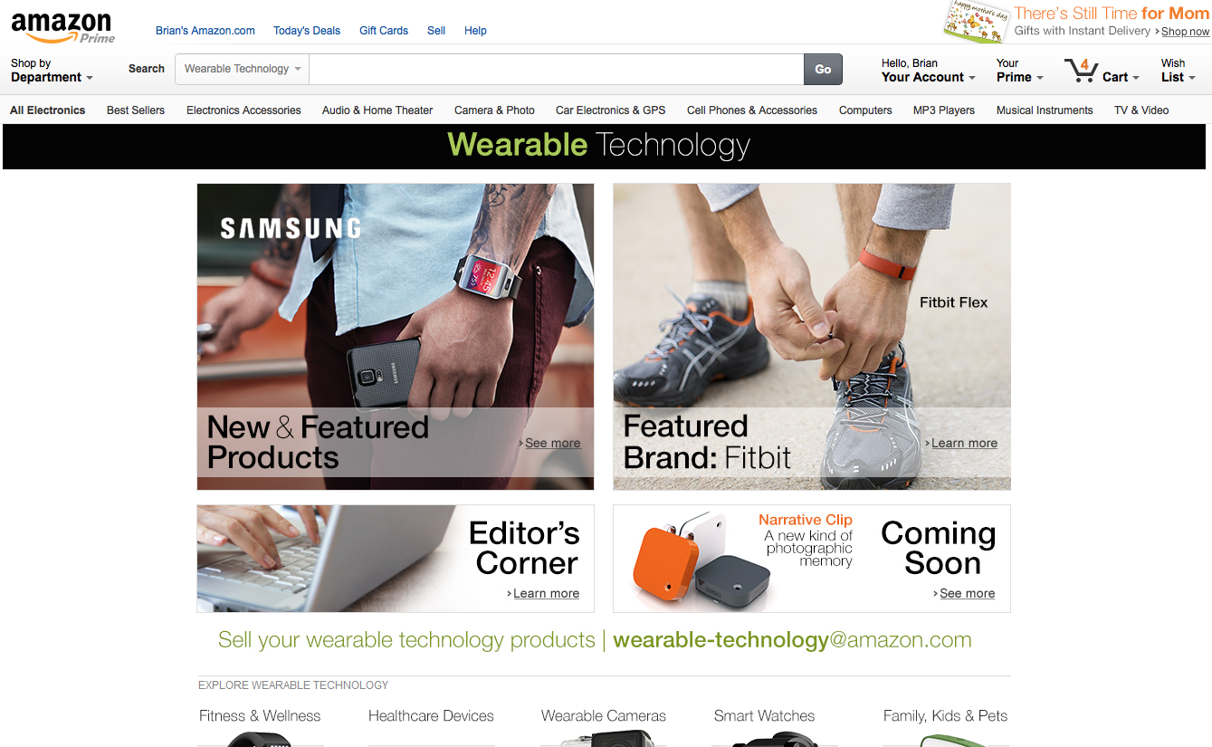 Amazon.com goes a step beyond simply investing in the widest variety of SKUs. Whether it be a dedicated store for a particular brand or a certain class of product, Amazon.com is quickly becoming a portal for product education and research as well as shopping. For example, Amazon.com announced the opening of its wearable computing store a couple of weeks ago.