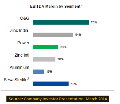 Sesa Sterlite has very strong fundamentals, which will help the company invest in assets and grow significantly. For the 9M FY2014, Sesa Sterlite had a cash and liquid investments position of $8 billion, undrawn lines of credit of $1.2 billion, and a free cash flow of $2.5 billion.