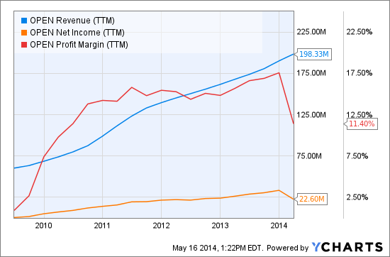 OpenTable's profit margin clocks in at a modest 11.4%. Another piece of bad news is that OpenTable's top line grew 18% in the last quarter, but the company warned that this might slow down as the quarters roll on.