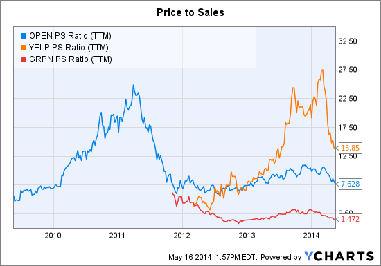 Yelp's shares also look ridiculously priced. The company is still growing at a blistering pace, however--66% top-line growth in the most recent quarter. Yelp's biggest problem right now is how to turn a profit. The company has remained in the red for 10 straight years, primarily due to the following reasons: