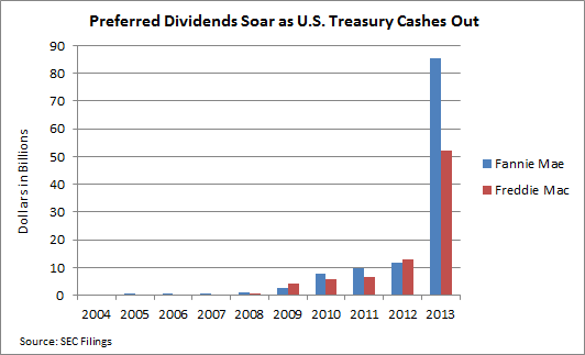 Dividends soared starting in 2009, when all preferred dividends were redirected to the U.S. Treasury.