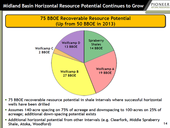 So what exactly does this mean for these companies? It's hard to say exactly because geologic formations aren't uniform. Pioneer believes that some of its acreage encompasses up to nine layers of technically extractable resources, but its peers might not find corresponding resources. As more and more data are collected from the Wolfcamp and Spraberry shale layers, we will get a much clearer picture for each company individually.