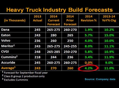 The good news is that, according to research from Bloomberg, most of the companies exposed to the heavy truck industry upgraded their forecasts for heavy duty North American production in the first quarter.