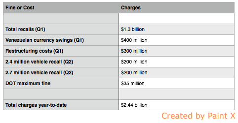 I apologize for the barrage of recall numbers and fine amounts, but it's truly staggering that this is happening right now, in my opinion. As not to bog the article down any farther, here's a clean view of all the year-to-date fines and costs: