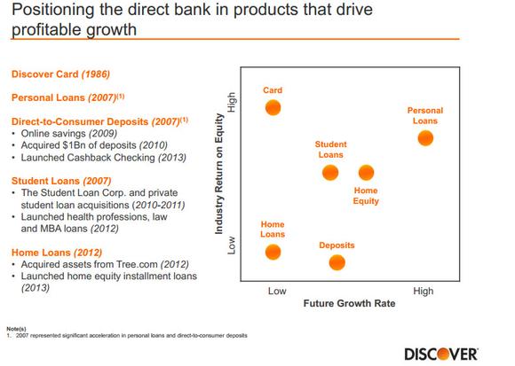 The fast growing personal loan segment does generate strong returns when times are good, but a negative shock to the economy or employment could put these loans in danger of delinquency and default. But the growth in personal loans was not an accident. In Discover's Shareholder Day presentation, the company presented the following graphic.