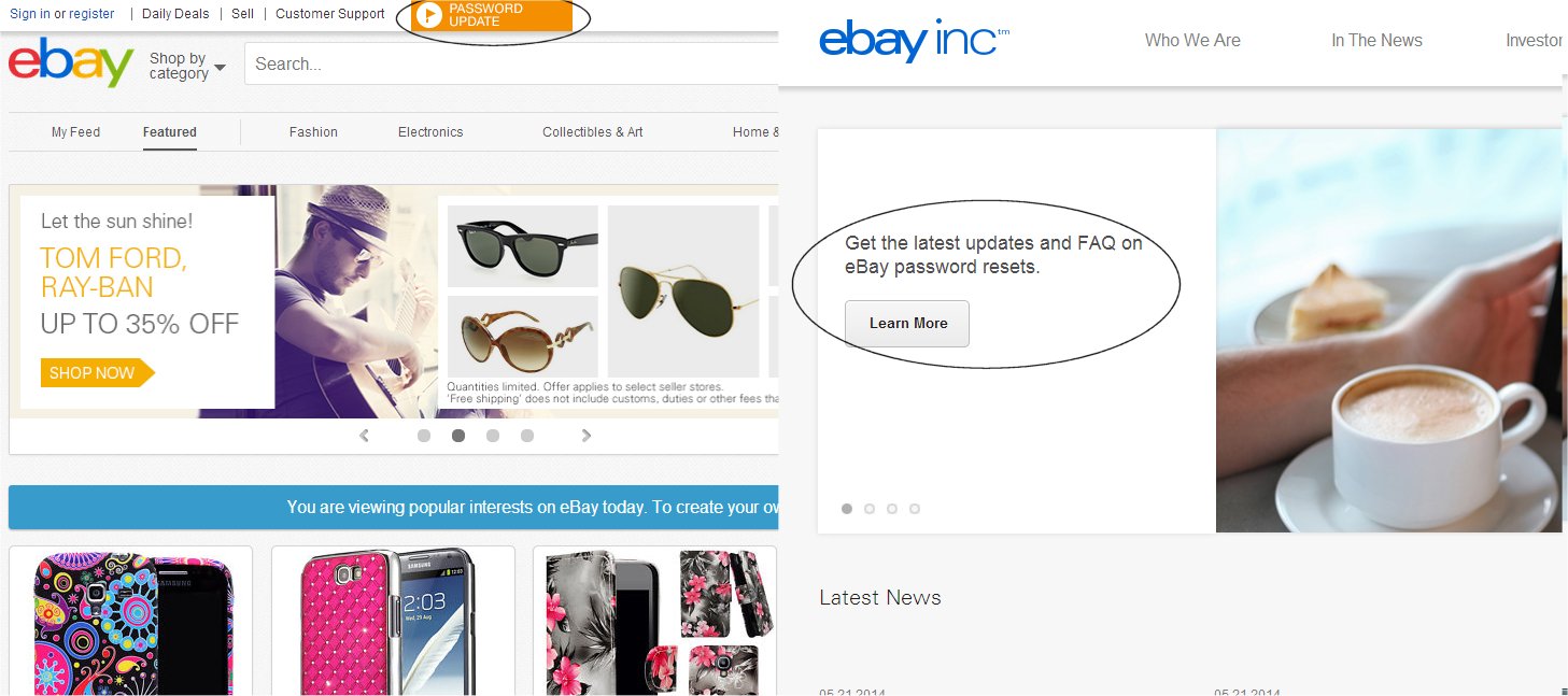 What's puzzling about the broken "Learn More" link on eBay's customer-facing website, www.ebay.com, is that the company's investor-facing website, www.ebayinc.com, prominently features useful information about the data breach.