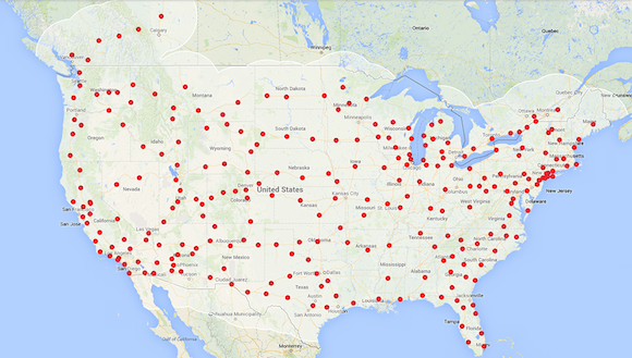Tesla's Supercharger network as projected for the end of 2015. Source: Tesla motors.
