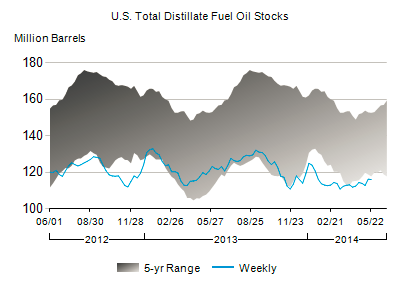 Distillates supplies, which include diesel and heating oil, dipped 0.2 million barrels (0.2%) for the third decline in the past four weeks. Distillates demand for the last four weeks is up a seasonally adjusted 8.6%. In the past year, distillates inventories have contracted 3.8%.