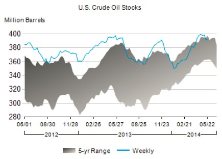 U.S. crude oil supplies increased 1.7 million barrels (0.4%) for the week ending May 23, according to an Energy Information Administration report (link opens a PDF) released today.