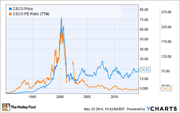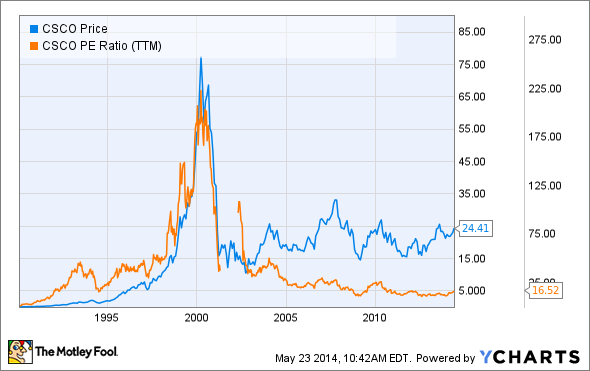 By 2001, Cisco's market cap was only $151 billion. Now, nearly 14 years later, Cisco's market cap is $124.6 billion.