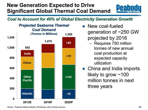 As that slide points out there is 250 GW of new coal-fired power generation coming online over the next few years. Those power plants will require a lot of coal, which will increasingly be supplied by the export market.