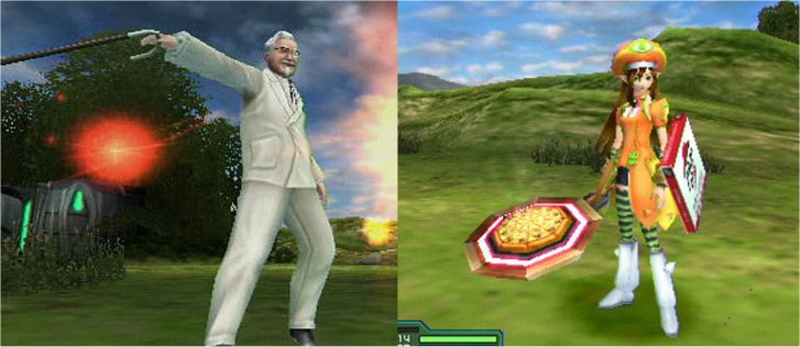 Colonel Sanders and Pizza Hut girl in Phantasy Star Portable 2. Source: Sega.