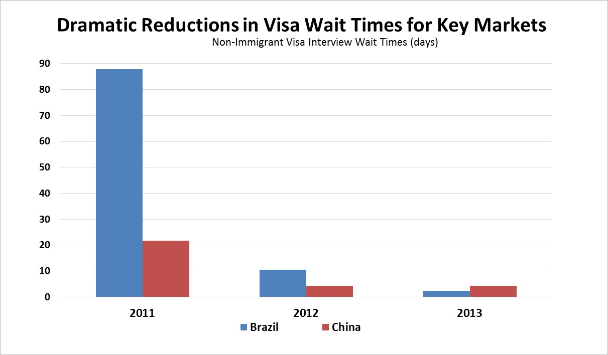 Since the president released his National Travel and Tourism Strategy in 2012, he has directed a number of government agencies to expedite the travel process for international visitors in a variety of ways, including dramatically reducing the time it takes to acquire a U.S. travel visa from emerging economies with large populations like China and Brazil.