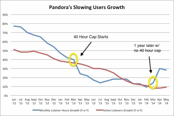 Many longtime followers of Pandora (investors or users) know that Pandora created quite a stir when it instituted a then-necessary 40-hour listener cap in March of 2013.