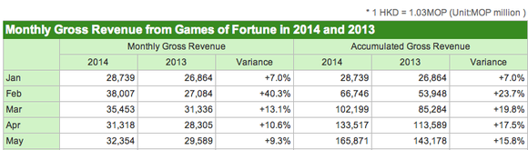 For the month of May, gross revenue in Macau rose 9.3% to $4.1 billion from the $3.7 billion recorded in the same month last year. While this is a nice turnout for the industry, it fell shy of the 14.8% increase (to an estimated $4.3 billion) analysts expected. Even so, the year-to-date performance of the industry shows that gaming revenue has jumped 15.8% from $17.9 billion last year to $20.8 billion for this year.