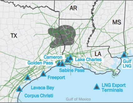 The natural gas industry and most investors had left the Haynesville Shale for dead. The economics of the natural gas-rich shale play just aren't as good as the Marcellus in an environment where gas prices were low. The economics, however, are starting to change as costs drop and gas prices rise. However, that's not the real reason that top Haynesville Shale drillers such as Chesapeake Energy (CHK +0.00%), EXCO Resources (NYSE: XCO), and Freeport-McMoRan (FCX 1.52%) are growing more excited by the re-emergence of the Haynesville Shale. Instead, these companies are interested in its potential to supply the growing number of export facilities being built along the Gulf Coast.