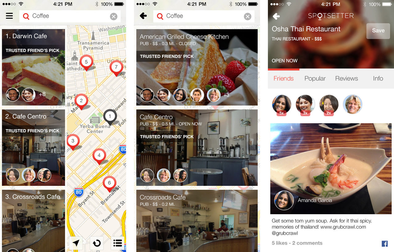 Apple recently acquired Spotsetter, which bills itself as a recommendations engine for places to go. Credit: Spotsetter.
