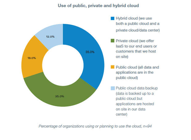A Tech Pro Research survey conducted last year revealed that 35% of organizations prefer using hybrid clouds (a combination of private and public clouds), while only 18% placed all their data exclusively in the public cloud.