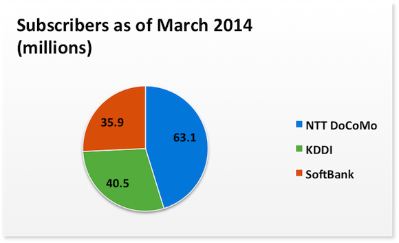 Source: NTT DoCoMo, KDDI, and SoftBank investor relations sites.