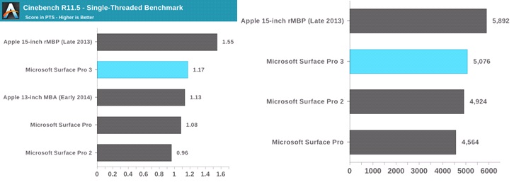 These benchmarks reveal that Surface is a better overall performer than the MacBook Air. This puts it in a competitive position with MacBook and other large-screen convertibles. The touch screen and additional pen allow it to compete with tablets, including the iPad Air.
