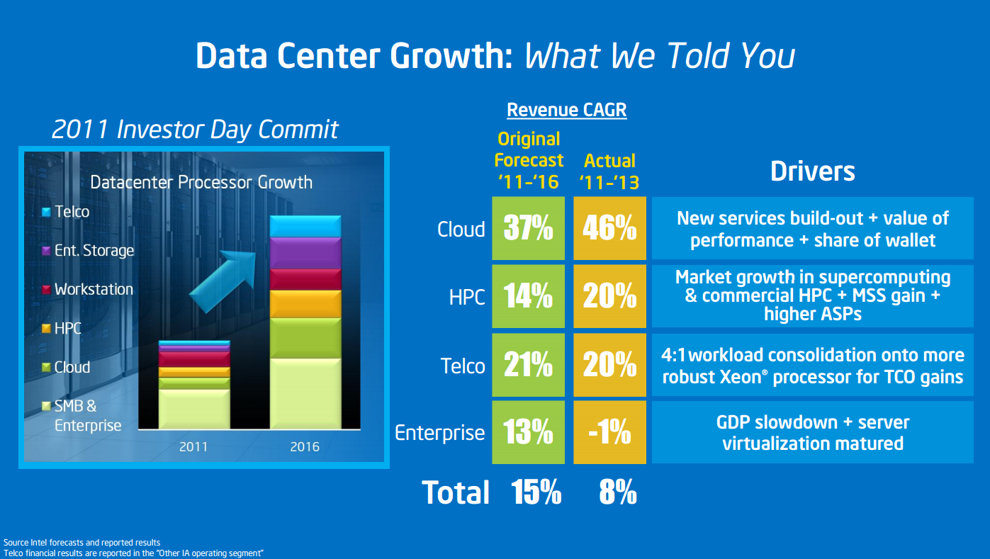 More to the point, Intel's next-generation platform known as Grantley should reinvigorate the high-performance compute market, particularly as the performance and power improvements over older platforms drive a lower total cost of ownership. That platform should launch in the third quarter of 2014, and as a result Mellanox's results should accelerate throughout the year.