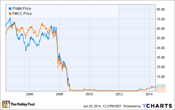 Since I couldn't shake the warm fuzzy feeling I got from my AIG analysis, I decided to take a "where are they now?" look at another couple of companies that found themselves at the epicenter of the financial crisis: Fannie Mae (FNMA 8.00%) and Freddie Mac (FMCC 6.28%).
