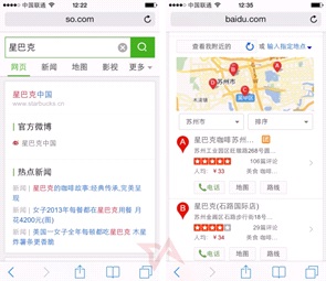 For instance, when searching for "Starbucks," Qihoo simply returns a list of links, while Baidu provides the nearest location, plus reviews and ratings from users, similar to Google's search results. The quality and depth of search results are paramount, especially in the mobile space, where location-based search is preferred.