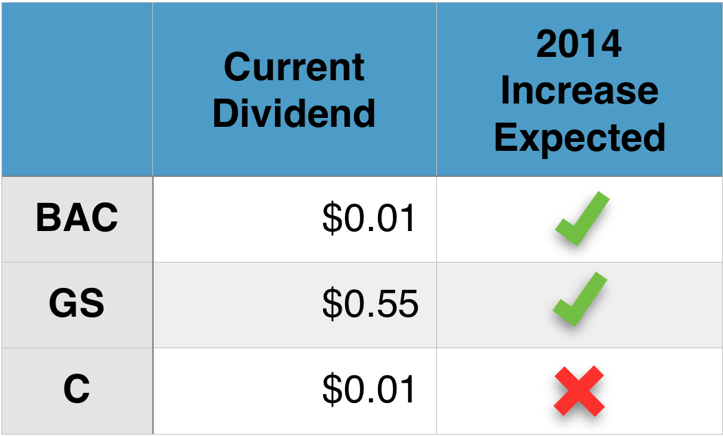 As banks learn to navigate the Fed stress tests and continue to regain strength in their financial positions, expect dividend increases to become a norm, not just from Bank of America, but across the sector to get back in the good graces of the investing public.