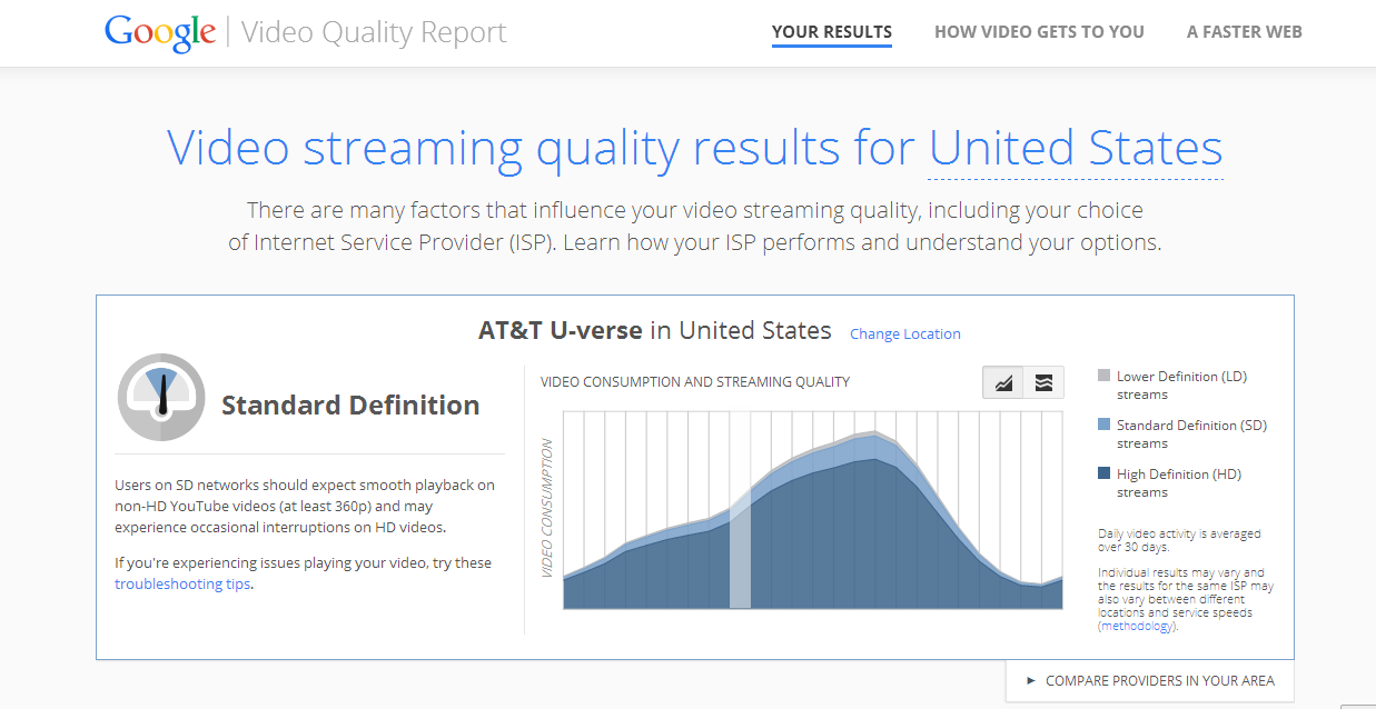 Google has created a tool called "Video Quality Report" for its video streaming website YouTube. The site provides data obtained from billions of YouTube videos watched across thousands of ISPs.The tool educates users on the role Internet service providers play in the quality of YouTube videos. People can also use the tool to determine which ISP will provide them with the best Internet in their area.