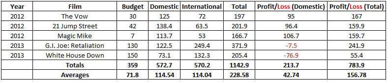 To be fair G.I. Joe and White House Down each recouped its production budget with international totals factored in, but domestically they under-performed. With the expected success of 22 Jump Street and a sequel to Magic Mike on the way plus roles in two upcoming X-Men movies, Tatum is about to become red hot once again. Ascending was a big risk for him and could still be an albatross come 2015.